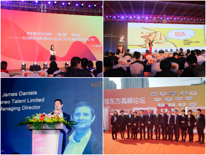 本次峰会汇集了酒店、餐饮、公寓、景区、高尔夫、物业、邮轮、航空、旅游院校等300余位人力资源副总裁、500余位人力资源精英、200余位总经理/业主代表及100多所优秀院校。万豪酒店集团大中华区人力资源运营副总裁Cecilia leong、香格里拉集团中国区人力资源副总裁Emma Zhang、洲际酒店集团大中华区资深精英拓展总监Maggie Zheng、温德姆酒店集团大中华区人力资源副总裁Matthew Brosenne、希尔顿酒店集团大中华区及蒙古招聘总监秦智强、凯悦酒店集团中国区人才管理总监史轶杰、原阿里巴巴人力资源总监、现任丁香园首席人力官徐燕娜、华住酒店集团人力资源高级副总裁何冰樱、安歆·YU集团创始人兼CEO徐早霞、杭州绿城物业服务集团有限公司副总裁金科丽等国内外众多知名旅游行业、酒店集团的人力资源总裁在峰会现场分析人力现状,解读行业热点,探讨业界人才发展未来趋势。杭州东方网升科技股份有限公司董事长、最佳东方、先之教育、迈点网、乔邦猎头创始人兼首席执行官乔毅对盛典发表了热情洋溢的致辞,最佳东方副总裁陈燕女士对外发布了《2017年中国旅游服务业人力资源白皮书—酒店业篇》。峰会现场热烈,规模超过1000人,线上观众超过100000人。