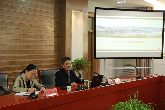 上午10:00,中山大学的老师和同学们早早地来到了花津校区会议中心第一会议室,校科研处处长、博士生导师陆林教授做了一场题为《乡村旅游:中国乡村振兴战略的重要途径》的学术报告,报告同时吸引了国旅学院各专业教师、在读博士和硕士研究生、各年级本科生代表前来聆听。报告由副院长方凤满主持。
