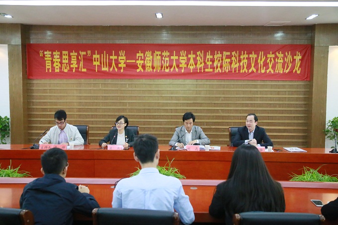 委员会致欢迎辞,介绍了我校的悠久历史和办学发展概况,并肯定了国旅学院创办“青春思享汇”本科生校际科技文化交流沙龙活动品牌的积极意义,为我校团员青年加强与兄弟友好学校团员青年的交流学习搭建了新的载体和渠道。她指出,中山大学旅游学院的专家老师和优秀学子从“百岛之城”珠海赶来“江城”芜湖,同我校师生进行交流,是对我校特别是国旅学院旅游管理专业人才培养工作的信任和支持。她希望中山大学的老师同学们在活动期间对我校和学院、专业的各项工作,尤其是人才培养工作多提宝贵的意见和建议,并在今后工作中继续关心支持我校国旅学院的事业发展,推动两校各领域全方位合作交流。乔静从学科发展、专业建设、师资队伍、科研成果、社会服务等方面介绍了国旅学院的基本情况,并高度肯定中山大学旅游管理专业的办学水平和人才培养质量,希望两所学校的旅游管理专业本科生积极交流、共同进步。