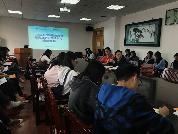 为确保实习工作的顺利开展,学院于1026日下午在行政楼三楼会议室举行皖南旅游目的地实习动员大会暨专题培训。副院长王朝辉、专业教师王群、辅导员吴辉以及全体2016级旅游管理专业学生参加了本次大会。