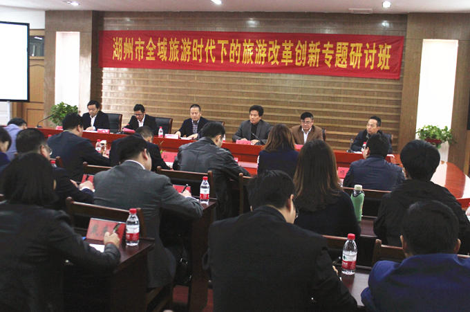 成功举办。湖州市副市长卢跃东带队并做研讨动员,湖州市各县(区)政府分管负责人、太湖国际度假区负责人,各县区旅委(局)主要负责人,省级旅游度假区及重点旅游乡镇主要负责人等50余人参加专题研讨。