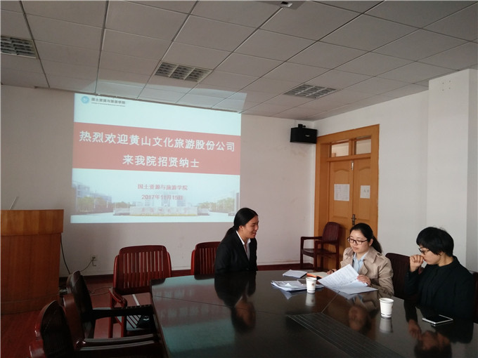 本网讯(国旅学院 韦银艳)11月14日,国旅学院"职海扬帆"系列招聘之黄山文化旅游股份公司专场招聘会于行政楼三楼会议室举办。黄山文旅黎阳in巷项目总经理贺晓侠、酒店项目负责人裴俊和2008级旅游管理专业校友周玲(人事负责人)亲自来国产精品