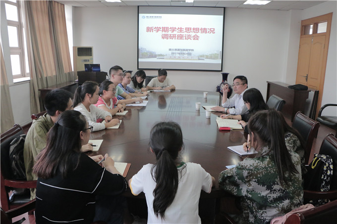 本网讯(国旅学院 赵 将)为贯彻落实全国高校思想政治工作会议精神,及时了解开学初学生思想状况,研究解决学生在思想、学习和生活等方面存在的实际突出问题。28日下午,国旅学院召开新学期师生座谈会,活动根据专业属性分成地理土管、旅游酒店、地信城规三个分会场。国旅学院领导班子成员、各专业负责人、全体专兼职辅导员以及学生代表参加了座谈会。