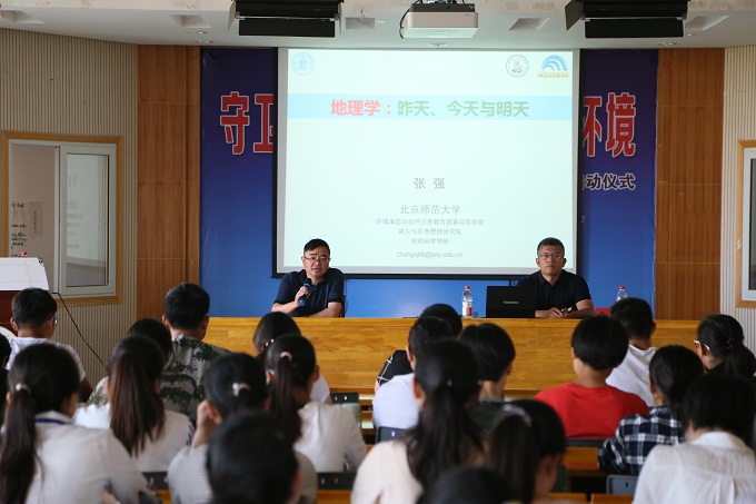 张教授的报告主题为《地理学:昨天、今天与明天》,他首先与同学们分享了他的学习与工作经历,光辉的履历让新同学们赞叹不已,而他本人却直言他的每次成功是用九次失败换来的,要清楚自己想要什么,要有永不言弃的坚强个性。张教授用很接地气的生动语言为同学们解析什么是地理学、地理学的过去现在及未来、地理科学与我们的生活,详细阐述了地理学的发展趋势和人类面临的地理问题,并以淮河流域干旱监测及预警系统、韩江下游水污染应用水量调度方案为例介绍了地理学的应用研究。