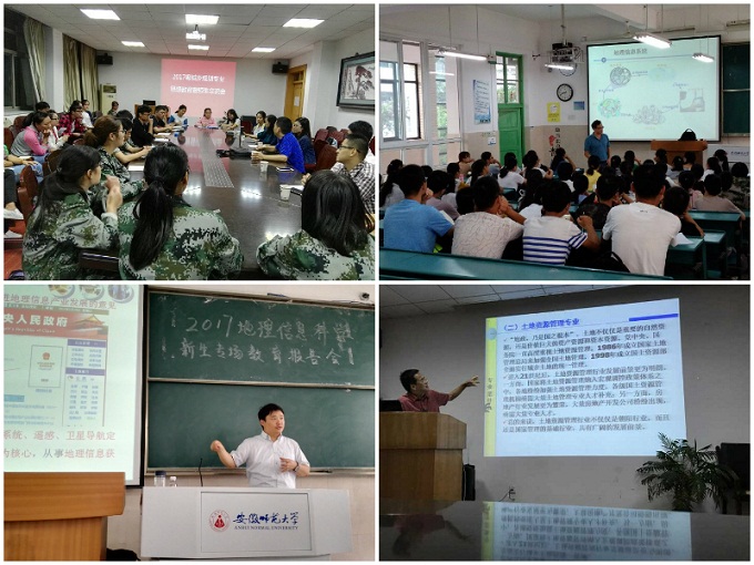 学院还邀请了北京师范大学博士生导师、国家杰出青年基金获得者、洪堡学者张强教授为2017级地理科学专业同学做《地理学:昨天、今天与明天》专场报告详细阐述了地理学的发展趋势和人类面临的地理问题。东南大学智慧城市研究院副院长、建筑学院城市规划系教授、博士生导师杨俊宴也应邀为2017级城乡规划新生带来《中国城镇化的转型和规划专业的历史挑战》专场报告。学院还邀请了中科院李正强研究员为2017级地理信息科学专业新生做《卫星环境遥感及其应用》专场报告,为同学们全面展示了遥感的魅力,李正强研究员还送给新生四句箴言:“学科前沿,国家需求,广阔天地,大有可为”,为新生们打了一剂强心针。