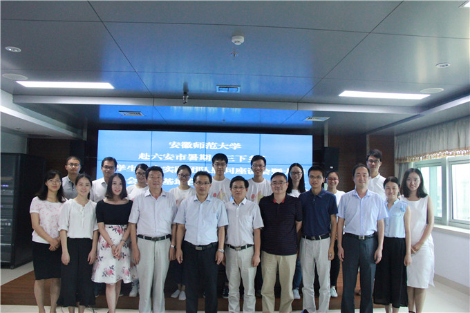 师生的到来表示欢迎,他介绍了六安市旅游发展的基本概况,并和大家一起观看了六安市旅游宣传片,现场人员在影片中领略了山美、水美、历史美、文化美的六安市。随后,团队指导老师吴辉介绍了团队筹建和调研工作的前期过程和现有成果,并表示要利用社会实践的机会,“装满同学们知识的篮子,点亮同学们智慧的明灯”,做大学生成长的“智能导航”。据悉,该实践团队初期实践成果以精准扶贫小组第一名的成绩入围了由国家旅游局举办的第七届全国大学生红色旅游创新策划大赛全国总决赛。实践队员鲍晓楠、梁宜人、李慧芳分别以《手捧红星归故里》、《连片特困区旅游精准扶贫新模式—以大别山贫困区核心区域六安市为例》、《“峰回路转”:红色廊道旅游策划》为题汇报了实践活动开展情况、展示实践成果,团队其他成员也汇报了在实践过程中提升专业技能、砥砺意志品质的实践心得体会。