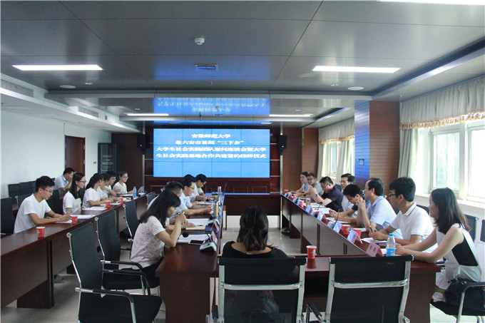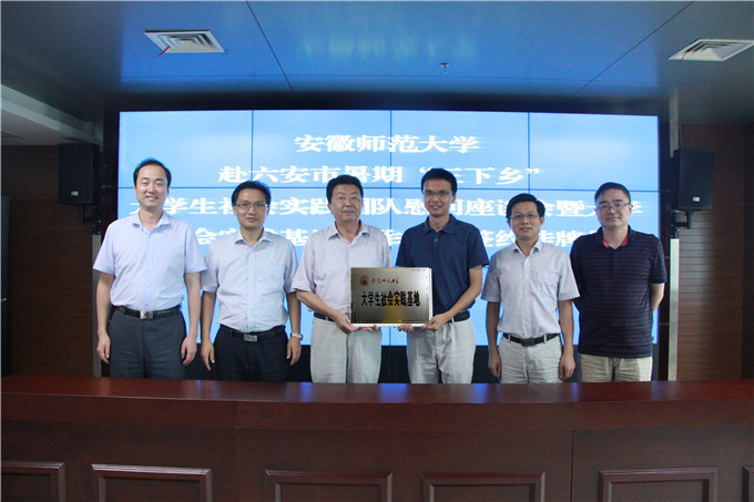 国土资源与旅游学院与六安市旅游委员会在六安市旅委会议室举行大学生社会实践基地合作共建签约、挂牌仪式。六安市旅游委员会主任梁修存、六安市旅游委员会党组书记漆学敏、校党委学工部部长、学生处处长台启权、校团委副书记汪凯、国旅学院院长苏勤、院党委副书记乔静出席仪式,六安市旅游委员会、我校国旅学院相关工作人员和我校赴六安市金寨县革命老区红色旅游资源与旅游精准扶贫调研团队全体实践队员参加了仪式。仪式由六安市旅游委员会主任梁修存主持。