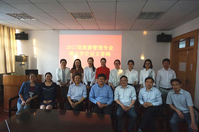 此次答辩会严格按照硕士研究生论文答辩程序和答辩委员会会议要求进行。答辩会开始前,答辩主席介绍了答辩委员会组成以及论文答辩的基本流程和要求。接着,8名研究生先后从选题意义、论文框架、研究思路、主要内容、创新之处等方面进行了陈述,答辩委员会就论文的相关问题进行了一一点评和提问,答辩研究生对答辩委员提出的问题进行了仔细思考和认真回答。最后,答辩委员会经过评议和无记名投票表决,认为其中7名研究生的论文符合学位论文的要求,行文规范、内容详实,答辩过程中能够准确回答专家们所提出的问题,同意通过硕士学位论文答辩,建议授予硕士专业学位。1名专业硕士答辩不通过,建议延期。最后,所有毕业生与老师进行合影留念。国旅学院2017届旅游管理专业硕士研究生学位论文答辩会圆满结束。