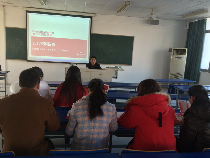 先后邀请新东方合肥学校、南京惠众旅行社有限公司、芜湖万达嘉华酒店、杭州洲际大酒店、北京优加旅行社、嘉兴华美达酒店、大连九成测绘信息公司合肥分公司、上海东方激光教育文化有限公司、楚江集团、南京国图信息产业股份有限公司、安徽省城建院暨安徽省旅游规划设计研究院等企业到学院进行招聘宣讲,并就求职意向、薪资待遇、晋升培训等学生普遍较为关心的问题进行现场解答。同时,邀请庄严基金会的各企业家给毕业生做“双创”经验交流,与同学们分享自己的创业经历和感悟。