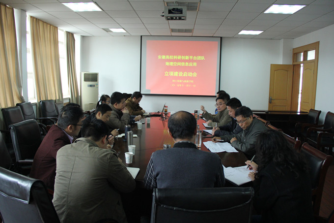 在行政楼四楼会议室召开安徽高校科研创新平台团队“地理空间信息应用”立项建设启动会。院领导、地信教研室老师及相关专业教师参加了会议。会议由科研副院长苏勤教授主持。