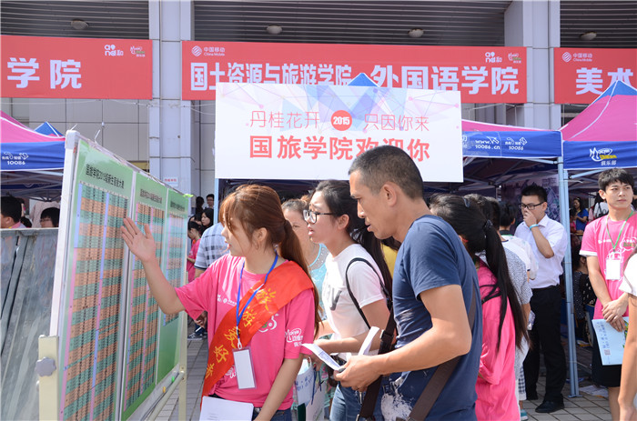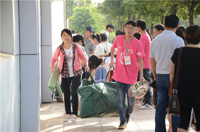 本网讯(国旅学院 陈健)丹桂飘香,师大有你。9月7日是2015级新生报到的日子,为组织好今年的迎新工作,国旅学院认真组织,细致安排,简化迎新报到程序,提前开通了“国旅迎新生QQ交流服务群”,组织了“党员迎新服务示范岗”,设计和派发了“迎新服务大礼包”,举办了“新生家长见面会”,以人性化的服务让2015级新生与大学的“第一次亲密接触”格外温馨难忘。