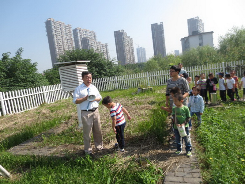 的气象园,查良松教授热情地给小朋友们讲解气象园内仪器的功能,耐心地告诉他们关于天气预报的知识,小朋友们认真地聆听了查良松教授对气象园的介绍,对气象仪器和天气变化产生了浓厚的兴趣。