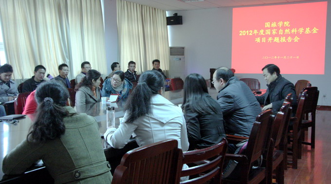 1121下午14:00,国旅学院第二场2012年度国家自然科学基金项目开题报告会在院三楼会议室举行,院领导、相关专业教师及研究生参加了报告会。