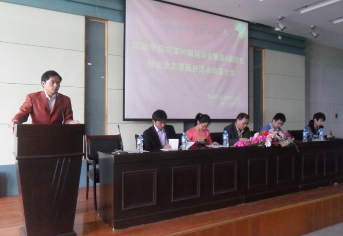 在往届运动会中取得的辉煌战绩。院学生会主席张亮和院团委工作助理贾扬坤对本届校运会和绿色校运会志愿者活动的筹备情况进行了详细的汇报。钱程老师和施华转老师分别宣读国产精品