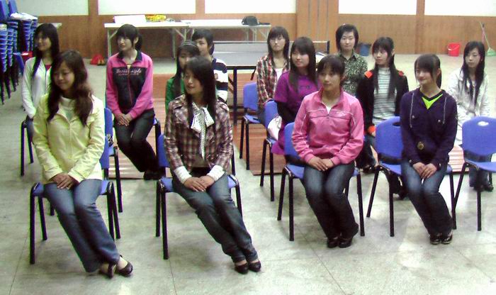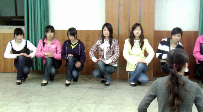 为了尽快让新成员了解礼仪队工作重点和注意事项,规范礼仪服务,并提高礼仪队成员整体素质水平,礼仪队接着展开集中培训,此次培训共分为四个阶段。第一阶段:礼仪接待行为规范的培训,旨在让礼仪队成员了解如何在活动现场迎宾、端茶倒水、剪彩等,并强调在礼仪服务中表情要保持微笑,站姿要端庄大方。第二阶段:化妆培训,学长凭借丰富的经验以及实际操作向其他成员传授了化妆心得,成员们受益良多。第三、四阶段:形体和体力培训,主要通过跳健美操和其他舞蹈来完善成员们的外在形体和内在气质。