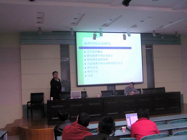 博士团交流的内容主要包括两个方面:一方面介绍南京大学地理与科学学院的学科建设情况;另一方面是各位博士就自己的研究方向和近阶段的研究工作进行交流,交流内容涉及土地资源、土地经济、旅游休闲行为、地理空间认知、生态规划关键技术和环境考古等。