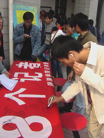 活动分别于当天中午和下午在花津校区第一、二食堂前举行。活动现场气氛活跃,展板一经展出,便吸引了许多同学驻足观看。走过的同学被眼前完全由手工制作、简洁生动的展板吸引。展板共分两个部分,主版以祝贺记者节为主,普及相关知识,版面上醒目的蓝色地球体现了国旅特色,中央“铁肩肩重任,妙手著文章”表达了对记者的崇高敬意。副版为“致广大同学的一封信”。记者团的成员一边向同学们解说本次活动的意义,展示由记者团编纂的国旅学院《学生工作简报》,一边向同学们散发征稿通知。同时还举行了签名仪式,全校各学院同学以自己的实际行动表达了对本次活动的支持,表达了对记者事业的支持及对他们真心的祝福。同学们纷纷表示:“这次活动让他们了解记者节,了解了国旅学院记者团,希望以后能有更多此类的活动”。