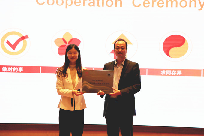 学生加入洲际英才学院表示诚挚欢迎,简要介绍了洲际英才学院的意义、概况和培养模式,并希望学员们能认真学习、用心服务、创造价值,早日实现个人梦想。苏勤代表院方送上寄语,表达了对洲际集团积极推进校企合作的感谢之情,同时也为对同学们进入英才学院表示热烈祝贺,他认为校企合作是学校应用转型的必由之路,希望同学们能珍惜来之不易的学习机会,利用学校、企业提供的平台,不断提高自身的综合素养。2018级酒店管理专业班长陶红瑞作为学员代表表态发言,表示在学习过程中一定会端正态度、虚心求教,严格要求自己,积极参加班级组织的专业知识讲座和实践技能操作等课程,努力朝着一名优秀的酒店职业经理人目标而努力。随后,校企双方代表乔静、顾靓共同为国产精品