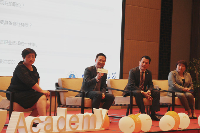 讲坛”环节中,芜湖华邑酒店总经理郭方、上海国家会展中心洲际酒店驻店经理许琳、杭州洲际酒店驻店经理杜林、上海瑞金洲际酒店人力资源总监胡杨青四位集团酒店领导分别围绕“实习”、“考研”、“就业”、“职业发展路径”等问题进行现场经验分享,为学员们答疑解惑。