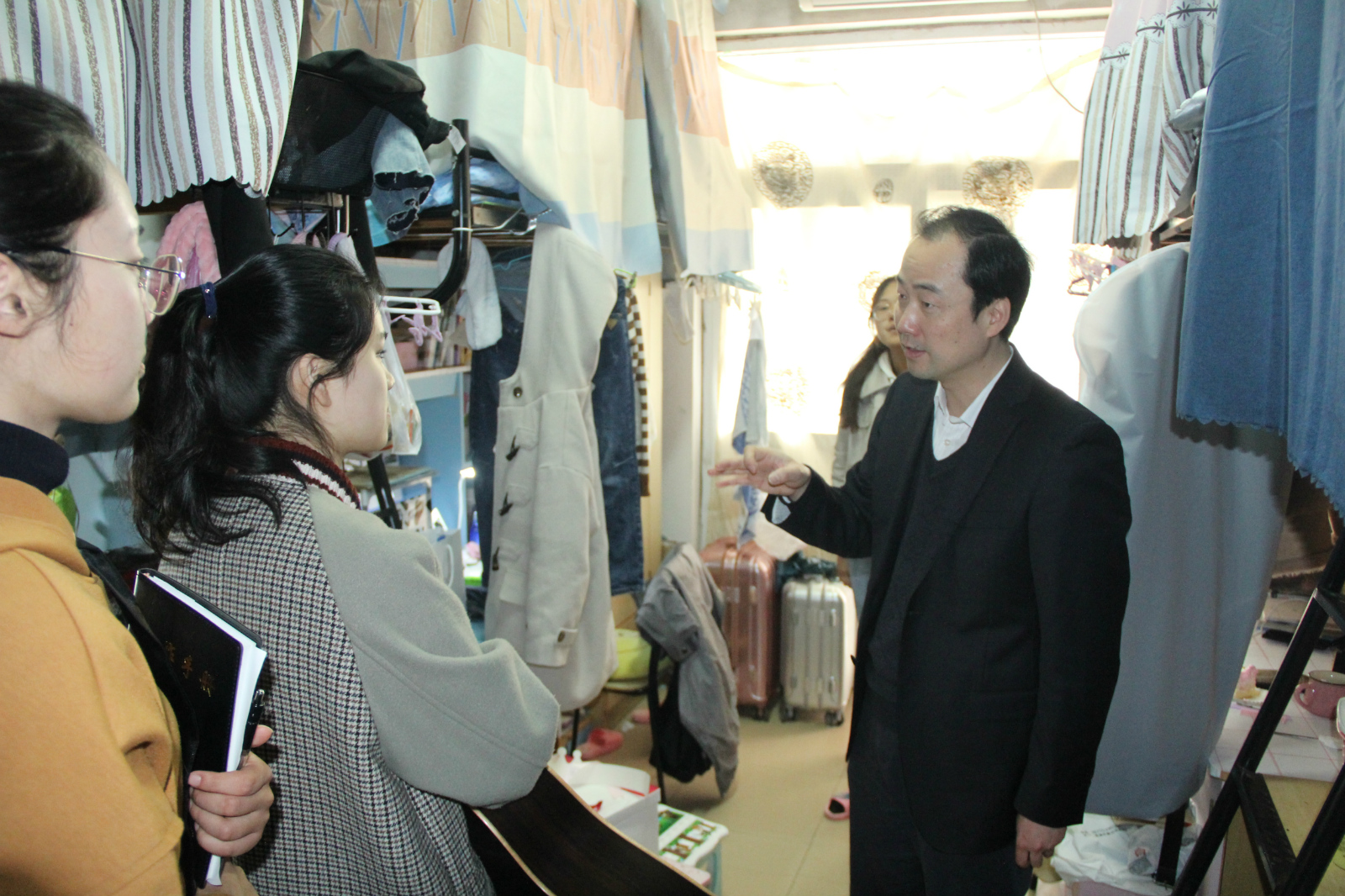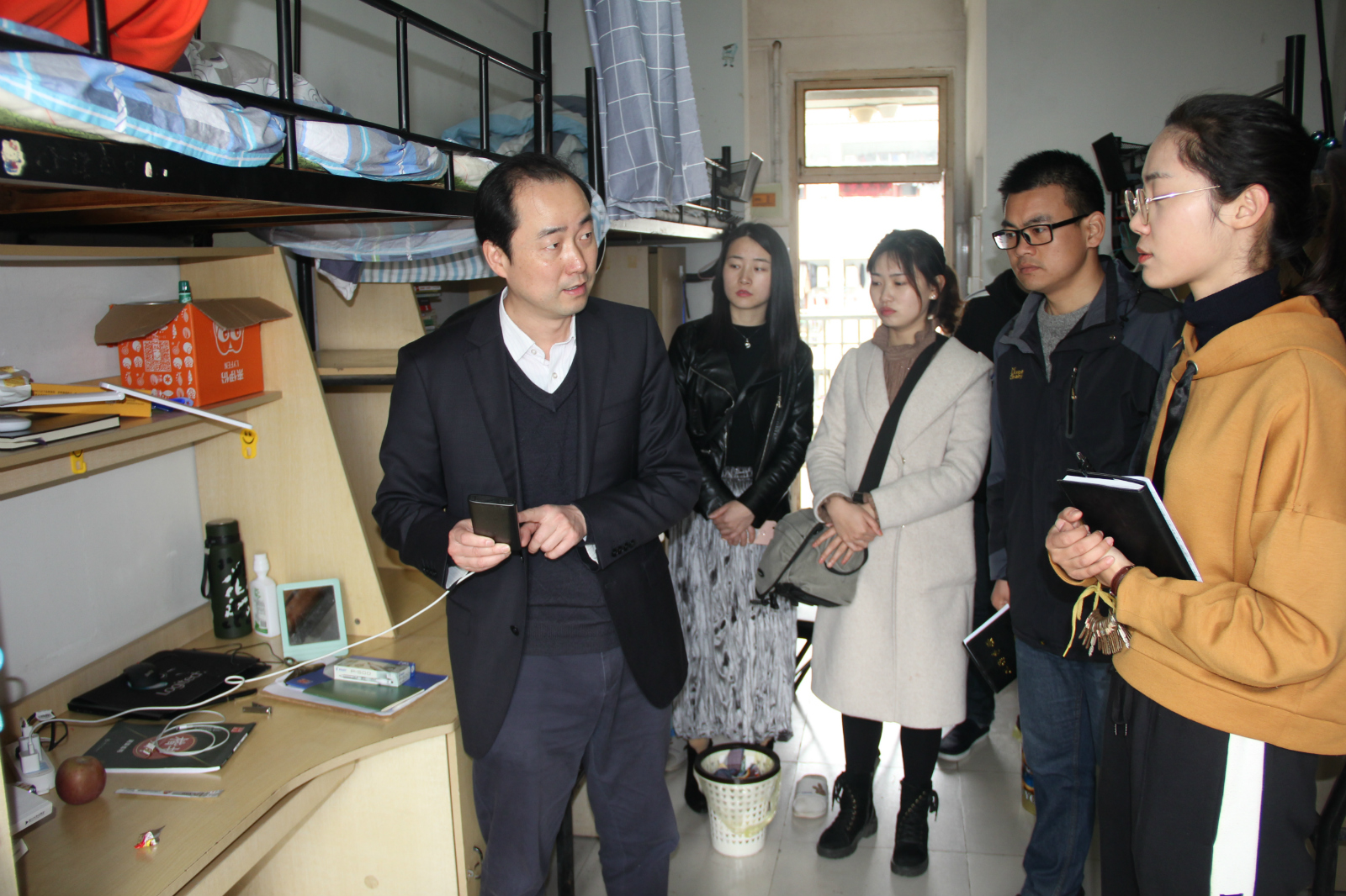 党委副书记乔静携同学院各年级辅导员,深入学生宿舍开展寝室安全、卫生文明突击检查。