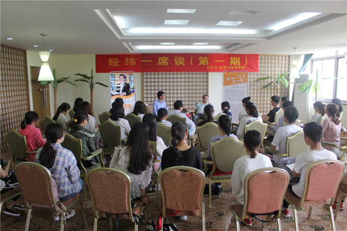 地理系98届杰出校友、国家杰出青年基金获得者、国家科学技术进步二等奖获得者严登华教授作为第一讲嘉宾。活动由学院团委书记吴辉主持,院党委副书记乔静、副院长方凤满、院团委副书记陈祥云,以及从全院遴选的30名同学参加此次活动。