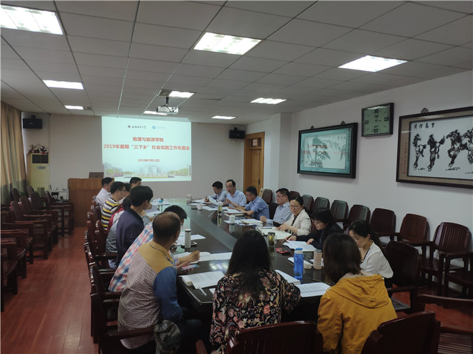 全体党政领导携各专业负责人、各科室负责人、辅导员代表召开了2019年暑期“三下乡”社会实践工作布置会。会上,院团委书记吴辉汇报了今年暑期实践工作准备阶段的基本情况,并就一些新变化、新要求作出说明。院长苏勤对实践育人工作提出要求,他指出,社会实践是“三个课堂”联动育人的重要组成部分,是“第一课堂”的重要延伸,是本科生人才培养的重要组成部分,每个专业都要高度重视。他称赞以全国暑期社会实践先进个人杨效忠教授、吴立副教授等为代表的一批优秀指导老师们带领团队奔赴基层一线开展实践活动的做法,鼓励广大教师积极参与社会实践和学科竞赛的指导工作,充分发挥实践育人的有效作用。