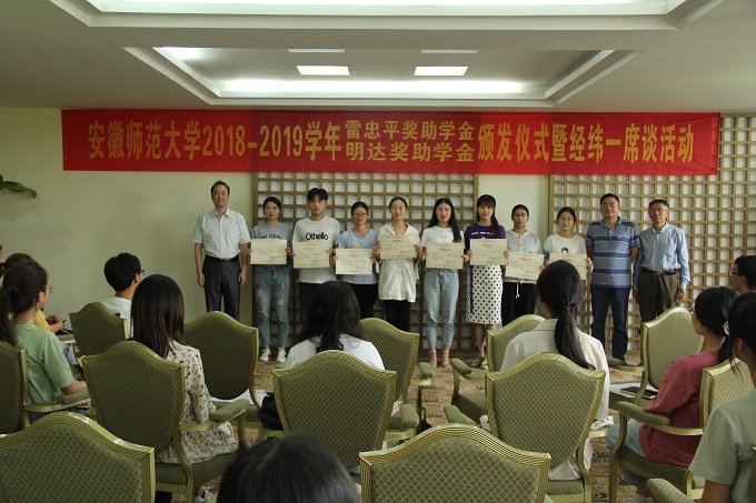 2018-2019学年雷忠平奖助学金、明达奖助学金颁发仪式。仪式上,主持人介绍了两项奖助学金的基本概况,雷忠平奖助学金和明达奖助学金分别于2012年和2016年在国产精品