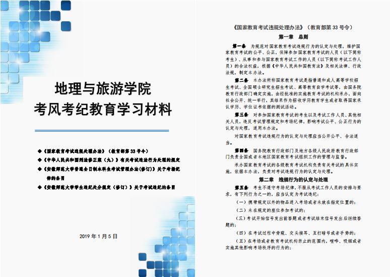 学风和考风建设,强化学生诚信考试意识,6月18日起,地理与旅游学院积极组织和开展了期末考风考纪教育专题系列活动。