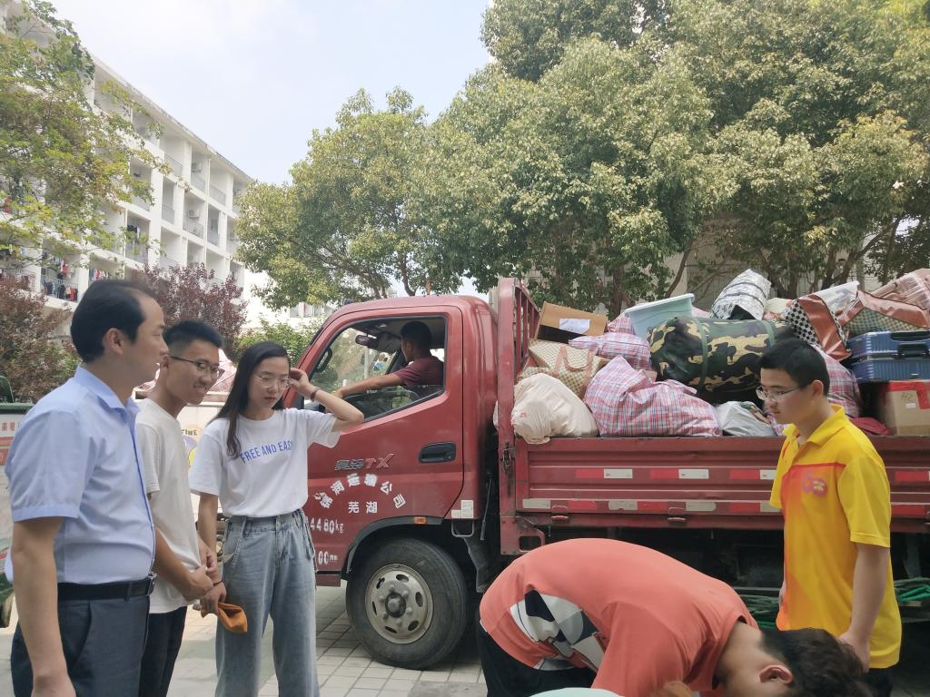 党委副书记乔静亲临宿舍搬迁现场,叮嘱同学们:宿舍搬迁牢记三注意,一要注意身体、二要注意贵重物品的保管、三要注意善始善终。乔静的声声叮嘱温暖了现场每一位搬迁的同学及家长。