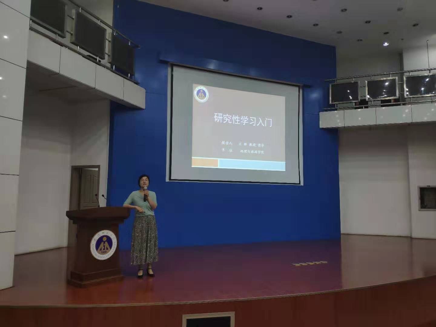 教授王群主讲的研究性学习培训会在敬文图书馆一楼报告厅举行,为实践学子开展了一场调研方法专题培训。会议中王群首先从研究性学习的概念、理念、特点、核心等方面让大家对研究性学习有了更加深入的了解。紧接着对于如何进性学习,王群在选题、资料获取、分析、对策上给大家给予了详细的指导。王群在会议的结尾还向大家讲解了研究报告、科研论文的构成,并告诫与会队长“善于观察,做一个对生活、行业、与专业的有心人;学会思考,做一个发现、分析与解决的理性人”。