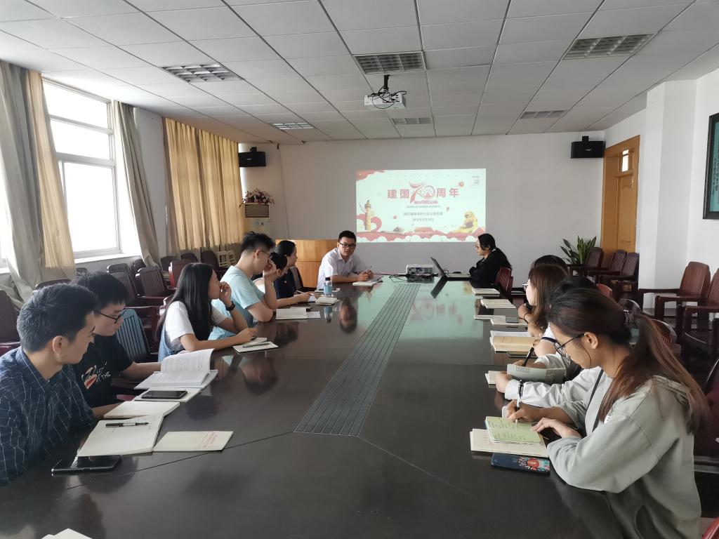 地信城本科生党支部在院行政楼三楼会议室开展了“喜迎新中国成立70周年 争做新时代优秀青年” 主题党课活动,全体在校党员参加了本次活动。党课由支部书记陈健主持并讲授。