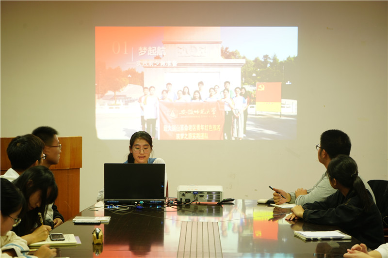 四支校级团队,“情系川皖 圆梦巴蜀”山区留守儿童支教团、赴广东韶关丹霞山暑期社会实践团队、赴大别山革命老区青年红色筑梦之旅团队以及砀山县乡村旅游扶贫公益服务团队,分别介绍团队活动概况。其中“川队”辗转1200多公里,远赴深山,真正做到“三下乡”,为教育扶贫事业、为志愿服务工作贡献青春力量。赴大别山革命老区青年红色旅游筑梦之旅实践团队,参与革命传统教育,接受红色信仰洗礼。赴砀山县乡村旅游扶贫公益服务团队问卷调查与实地走访双管齐下,发现砀山县发展问题并提出解决方案。赴广东韶关丹霞山暑期社会实践团队主要进行地质调研,了解丹霞山若干典型造景地貌并记录数据。