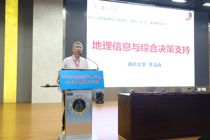开幕式结束后举行了GIS一流专业建设高峰论坛,李满春教授、张书亮教授做论坛主旨报告。李满春围绕“地理信息与综合决策支持”的主题,以南京大学为例回顾了地理学在中国的发展历程,并重点介绍了在当代地理学中,GIS对南海的综合决策支持的方法、价值和意义。张书亮教授以“GIS专业建设和实验教学的探索与实践”为主题,重点强调了立德树人对高校人才培养的意义,并详细介绍了南京师范大学在建设全国一流GIS专业过程中的经验成果和路径方法。
