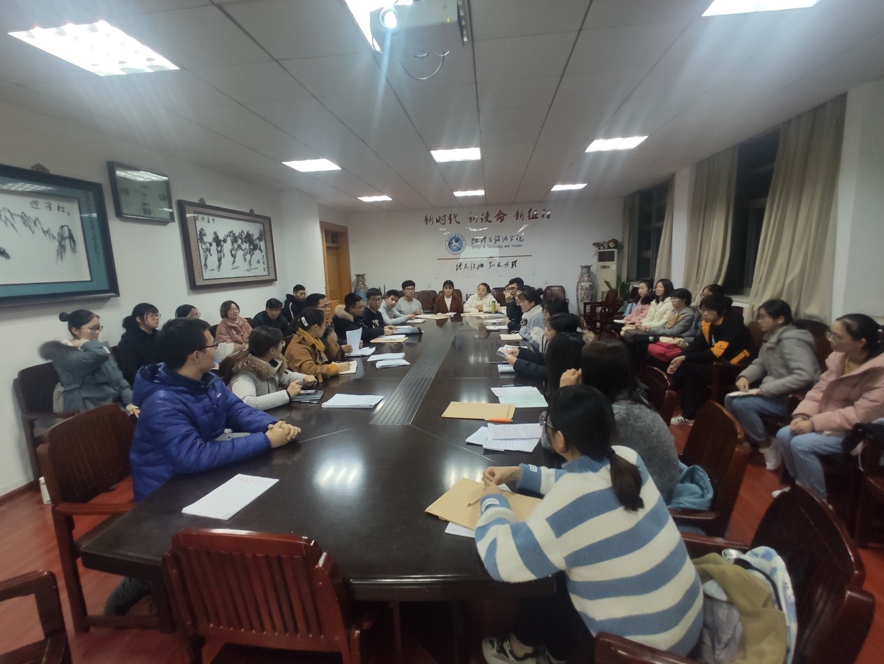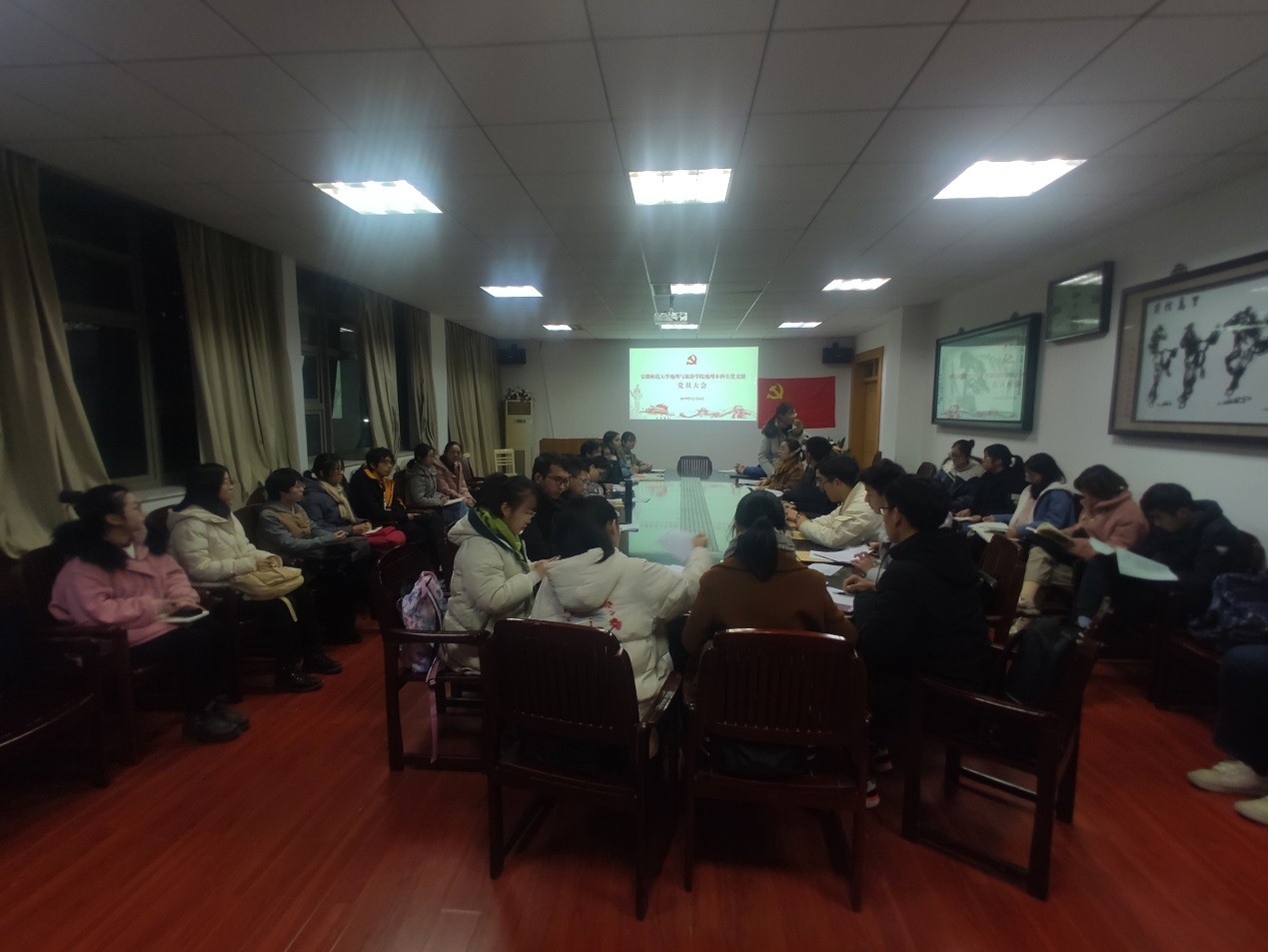 地理本科生党支部在学院行政楼三楼召开党员大会,讨论接收秦义轩、刘冬冬、洪健文、张莉莉、买合丽娅·来海提、高宇凡、孙思、简宁杰、乔欣瑞9名发展对象为中共预备党员事宜。党支部全体党员、9名发展对象参加会议。会议由党支部书记齐小学主持。
