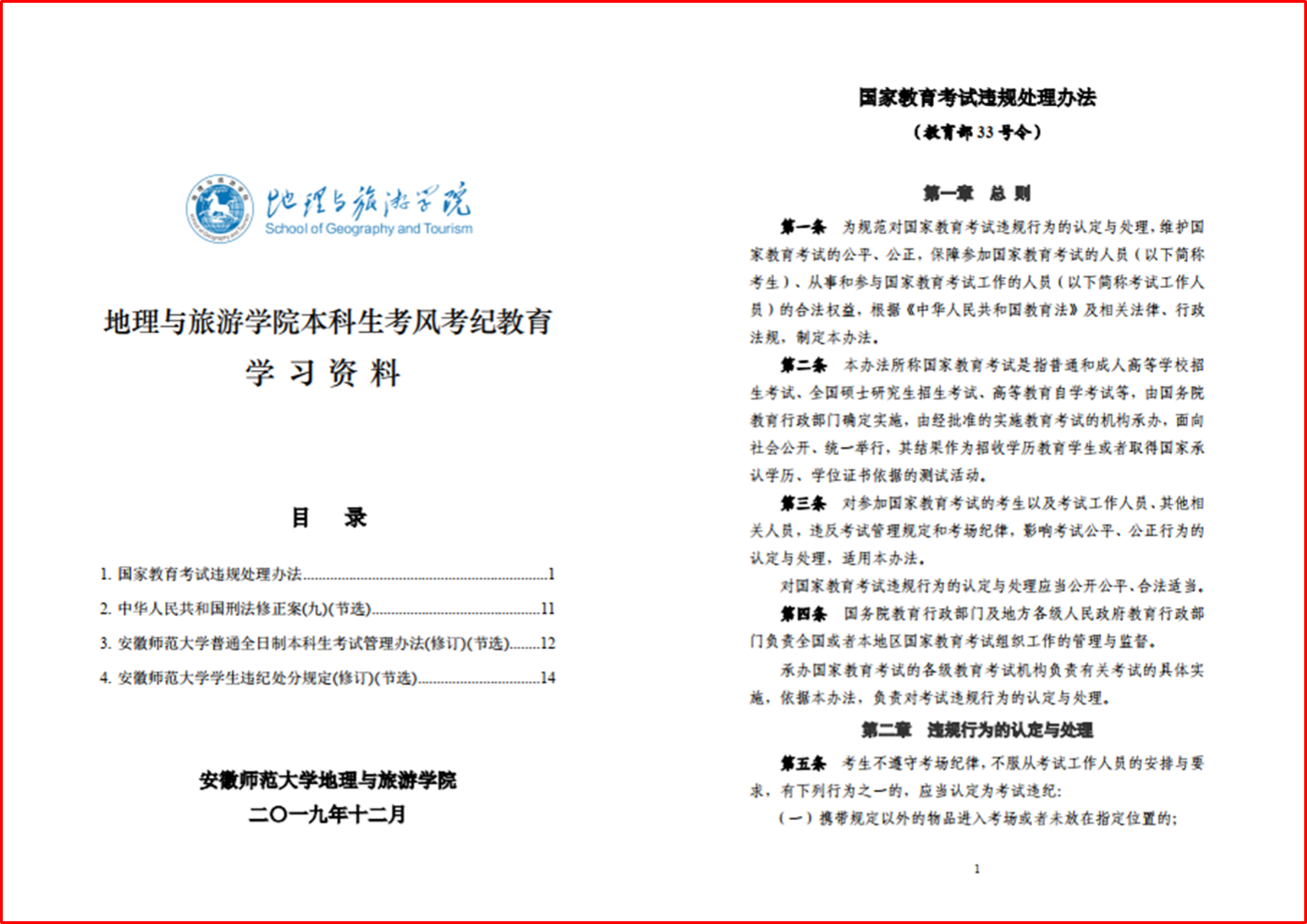 编订学习资料,宣传法律规定。为进一步提高学生对考风考纪相关法律法规的认识和了解,学院安排专人整理国家教育考试违规处理办法、国产精品