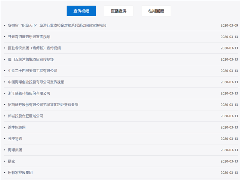 陈祥云)为全力做好新冠肺炎疫情防控期间高校毕业生就业促进工作,服务长三角高质量一体化发展国家战略和安徽省“旅游强省”建设目标,2020年3月,安徽省第五届“职旅天下”旅游行业政校企在线对接活动暨高校公益网上招聘会成功举办。该活动由安徽省文化和旅游厅、国产精品