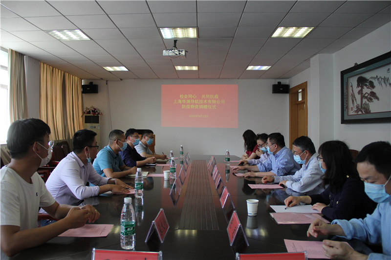 举行“校企同心、共同抗疫”上海华测导航技术股份有限公司捐助抗疫物资仪式暨校企合作交流座谈会。上海华测导航副总经理宋少华、安徽省公司总经理戴诗奇、安徽省高校销售经理秦报龙、安徽区域经理张学、安徽省技术经理宋大游等代表上海华测导航技术股份有限公司向国产精品