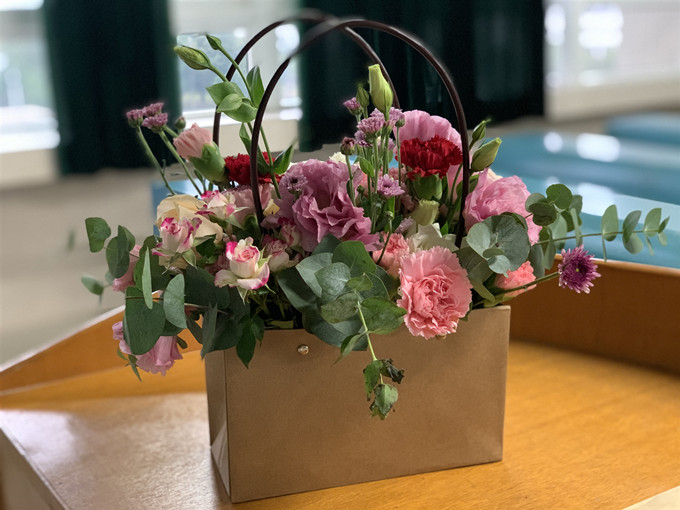 活动开始,花艺师对插花的由来、花器的异同以及如何养花护花进行了讲解,介绍了花材、叶材的修剪处理,插花基本结构和基本造型技法,并为大家示范插花步骤。在花艺师的讲解和指导下,教职工们展现自己的聪明才智,发挥对美的想象和创意,经过一个多小时的亲手实践,一盆盆各具特色的美丽插花作品展现在大家眼前,大家手捧着自己的得意之作,纷纷拍照留影,脸上洋溢着喜悦之情。
