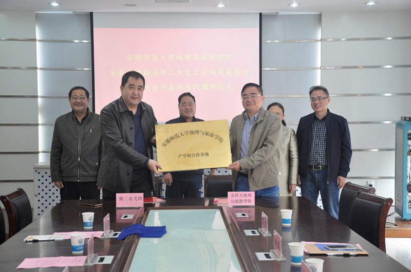院长苏勤、副院长方凤满、李虎教授、麻金继教授一行前往安徽省地勘局第二水文工程地质勘查院进行交流访问并签订产学研合作协议,第二水文工程地质勘查院院长黄作辉等领导班子成员及相关部门负责人和技术专家参加座谈会。