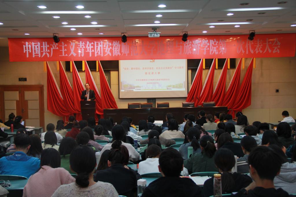 “党史、新中国史、改革开放史、社会主义发展史”学习教育微党课大赛在学院实验楼101报告厅举行,院党委副书记乔静,各本科生党支部书记、辅导员参加活动并担任评委,学院学生党员培训班和入党积极分子培训班全体成员现场观摩学习。