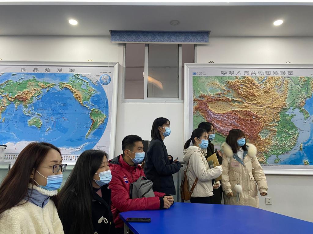 随后,老师带领第一小组同学参观地理专用教室,并将小组同学分配给各位地理老师。小组成员向各自指导老师说明此次见习与研习的任务、要求,衔接好接下来的听课和班主任管理等事宜。