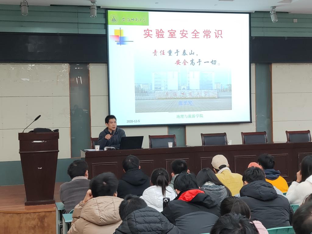 在实验楼101报告厅举办了实验室安全教育与考试工作培训会。本次培训由学校实验室安全督查组专家张平究教授主讲,学院行政副院长赵冬梅、学院高级实验师林跃胜以及2020级地理科学专业全体本科生和自然地理学专业全体研究生200余名学生参加了本次培训。