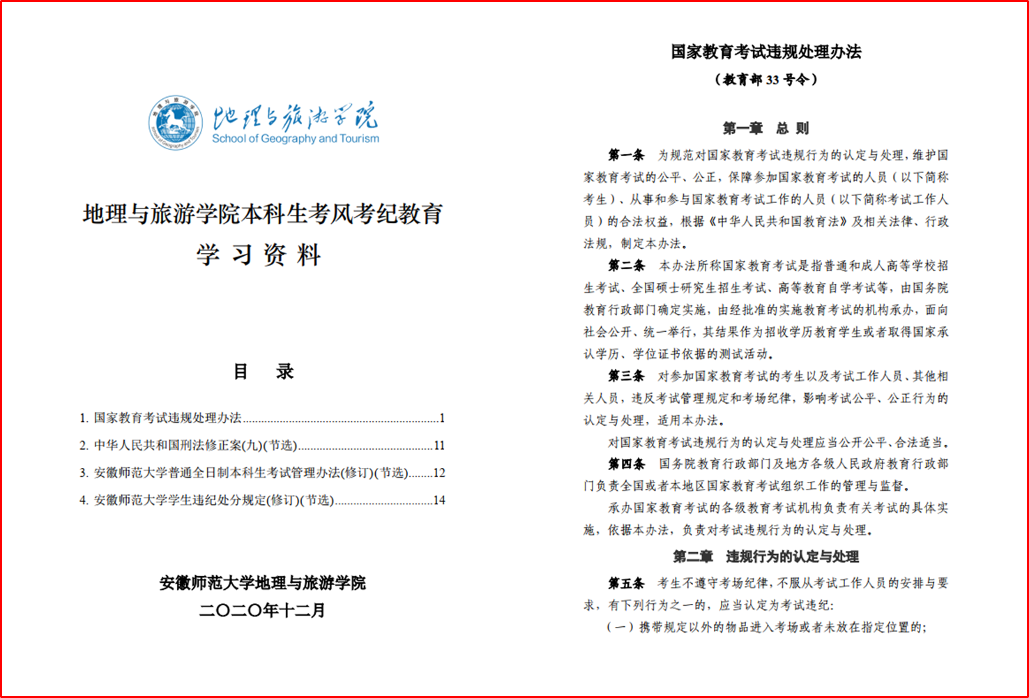 编订学习资料,宣传法律规定。为进一步提高学生对考风考纪相关法律法规的认识和了解,学院安排专人整理国家教育考试违规处理办法、国产精品
