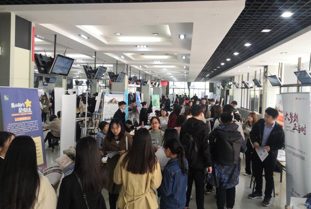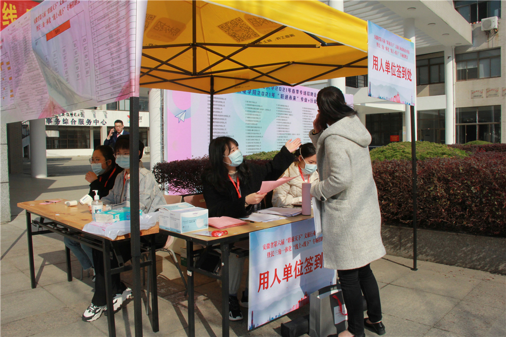 承办的安徽省第六届“职旅天下”文旅行业政校企对接暨长三角一体化“线上+线下”专场招聘会由我校成功举办。来自全国各地的120余家企业通过线下线上来校招贤纳士、选聘英才,6000多个招聘岗位涉及文化、旅游、教育、科技等多个门类,涵盖世界和中国500强、中国旅游集团20强、中国文化企业品牌价值TOP50等多个业态。招聘会吸引了全校及周边高校毕业生的积极参与。