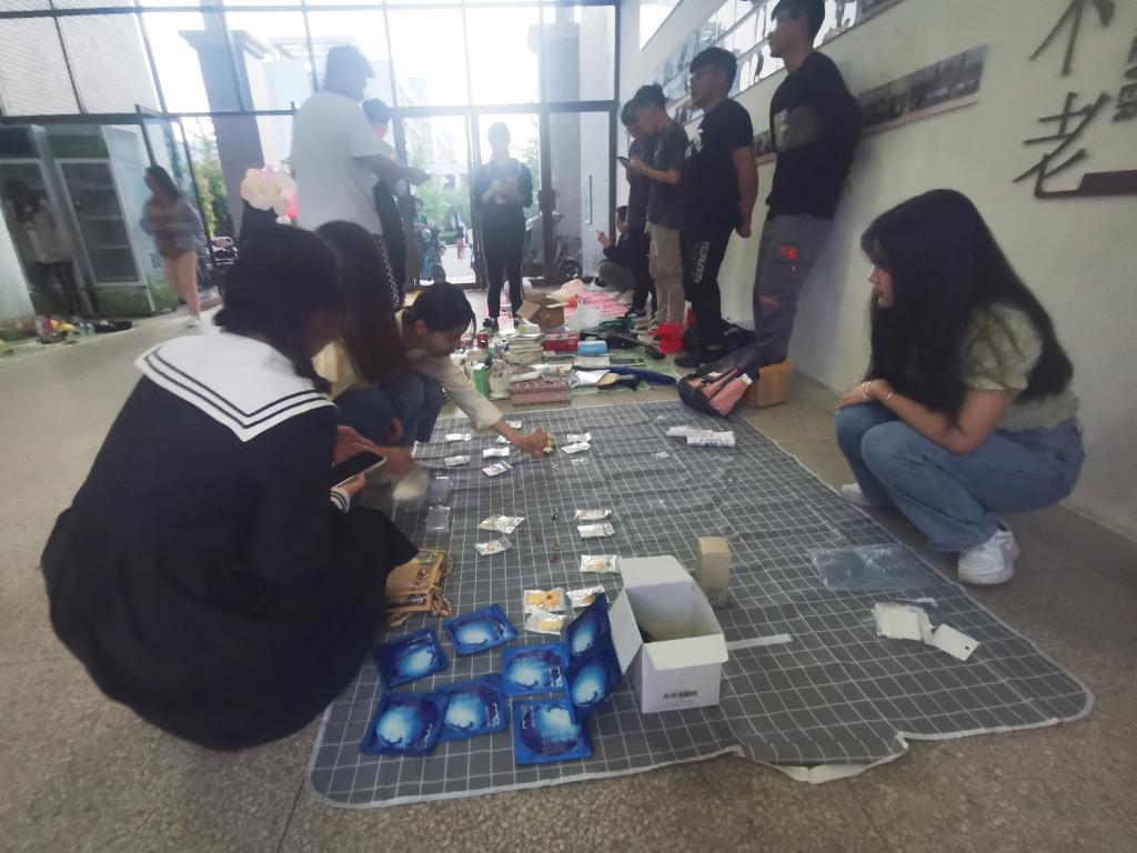 本次活动共分为三个部分。活动第一部分,来自主办班级19旅管的杨睿同学和林静同学主持活动开幕仪式,介绍了本次活动“自由售卖、公平交易”的交易原则,售卖结束后“最佳摊位”的评选细则以及所有摊位费用后期的用途。随着天色渐暗,参加售卖的同学已全数到场并布置好摊位,老师们各班同学也陆续到来,实验楼的氛围开始热闹起来。