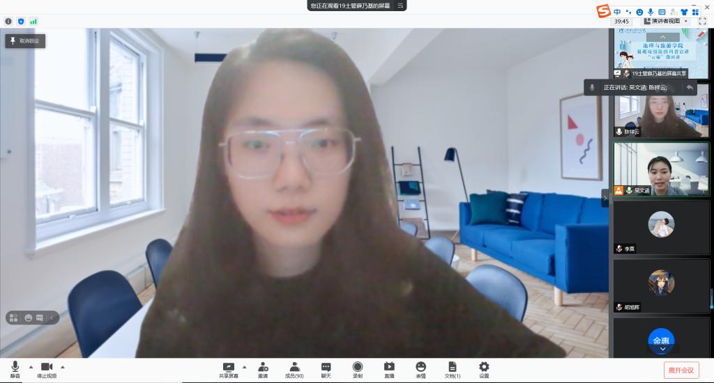 课后,同学们就本次微团课的体会与感悟展开了充分的讨论。最后,陈祥云作总结点评并寄语广大团员青年。她全面精准地概括了本次“云端”微团课的内容,并鼓励参会的学生代表将微团课的内容通过团日活动进行宣传总结。同时她鼓励广大青年团员做到“三心”——疫情防控处处留心、共同抗疫聚力凝心、乐于担当充满信心。希望团员青年们坚定战疫信念,积极承担青年责任,用实际行动证明新时代大学生的使命和担当。