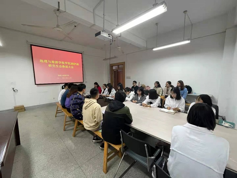 2021届研究生会换届大会在学院一楼教研室召开,全体工作人员参与本次大会。会议由研究生会主席袁宏瑞主持,学院副院长方凤满、研究生秘书从然、专职辅导员王美出席会议。