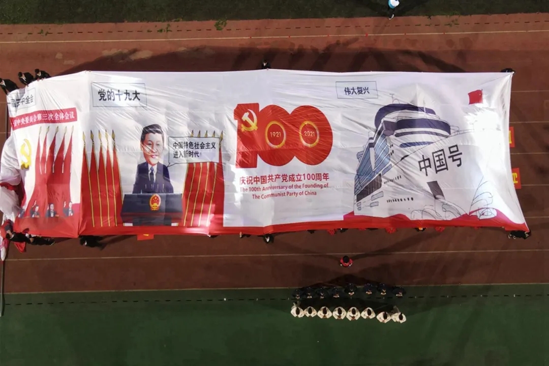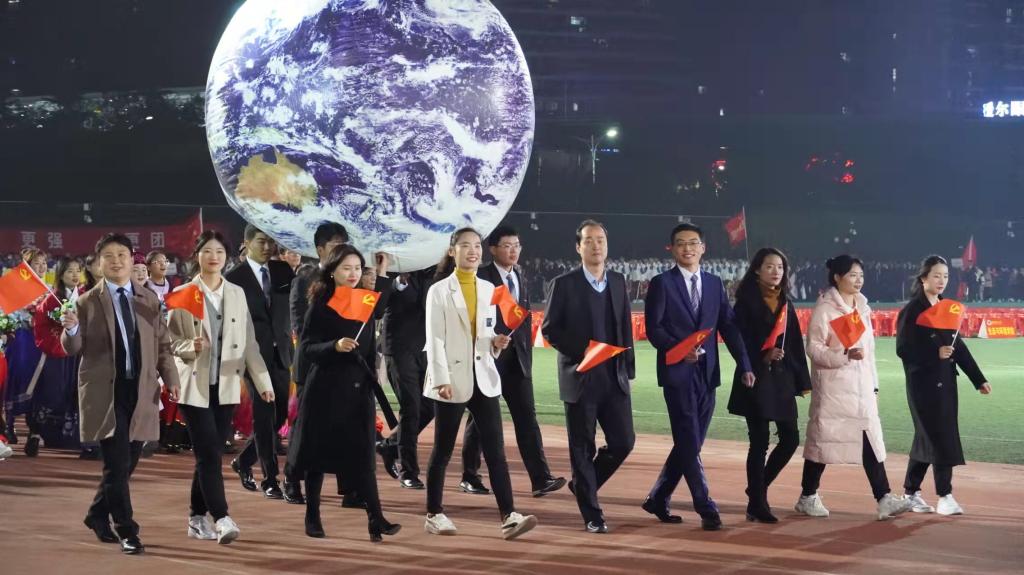 作为学院方针队展示组第一个入场,以热情饱满的姿态向全校师生展示地旅学子昂扬挺拔的身姿,铿锵有力的步伐。“经天纬地,弘道明理。地旅学子,所向披靡”,响彻全场的口号昭示着地旅必胜的决心。主席台前,地旅学子协同合作将一幅壮阔娟丽的党史图卷徐徐展开,展示蓬勃生机和青春朝气;富有专业特色的荧光地球被高高举起;身着绚丽服饰的少数民族同学别具一格,载歌载舞,彰显了民族同心的和谐气象;礼仪队的红色旗袍流转光华,与高高的党徽遥相呼应。在党成立100周年,国产精品