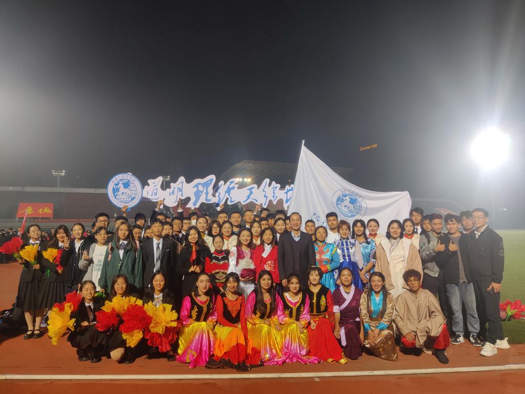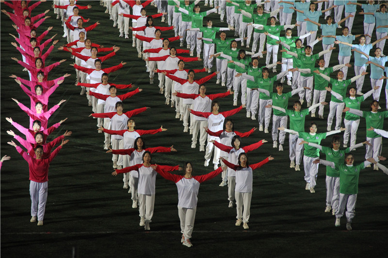 师生也分别《社会主义好》、广播体操以及拉拉队表演当中,整齐划一的动作,挺拔昂扬的姿态收获了全体观众的热烈掌声,为今晚的开幕式画下圆满句号。