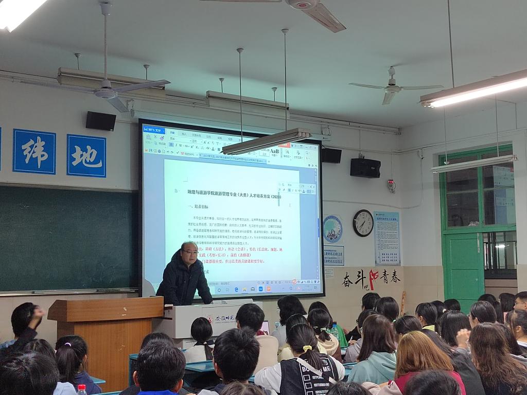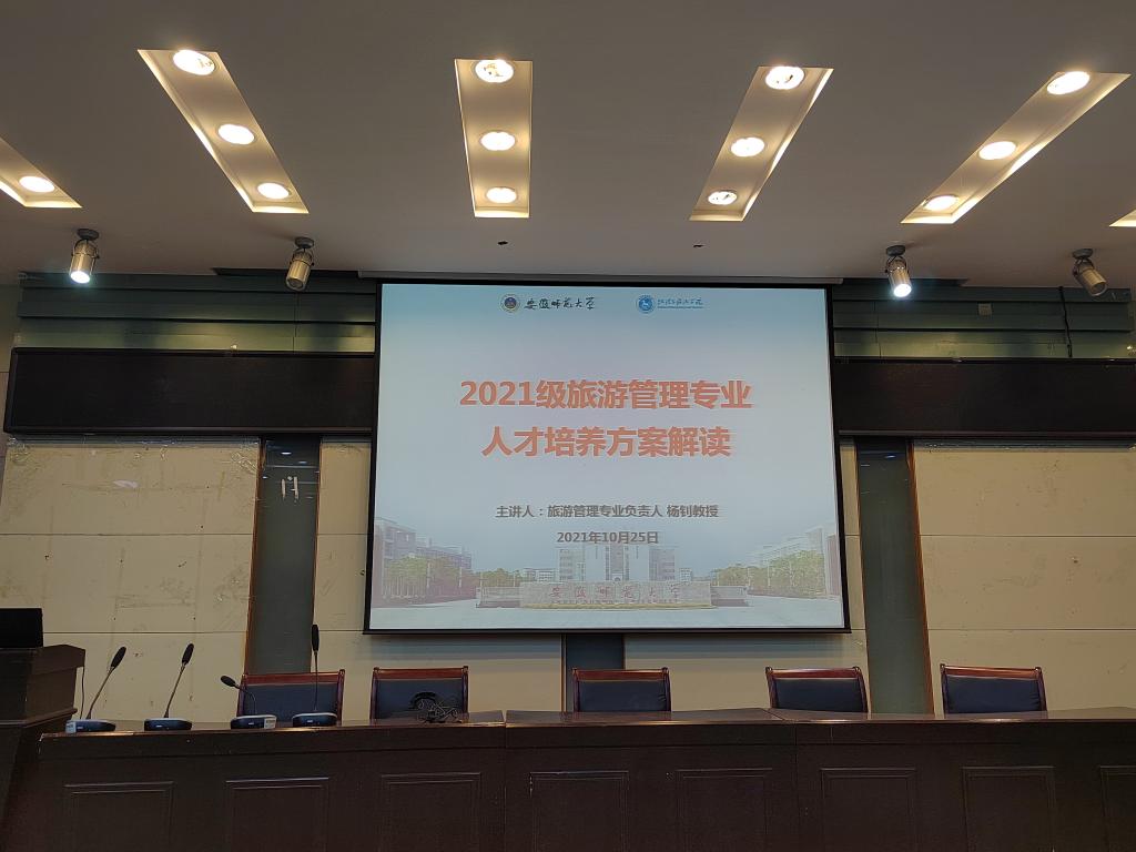 旅游管理专业负责人杨钊教授在行知楼为2021级旅游管理专业学生专项解读《2021级旅游管理专业大人才培养方案》的解读讲座。